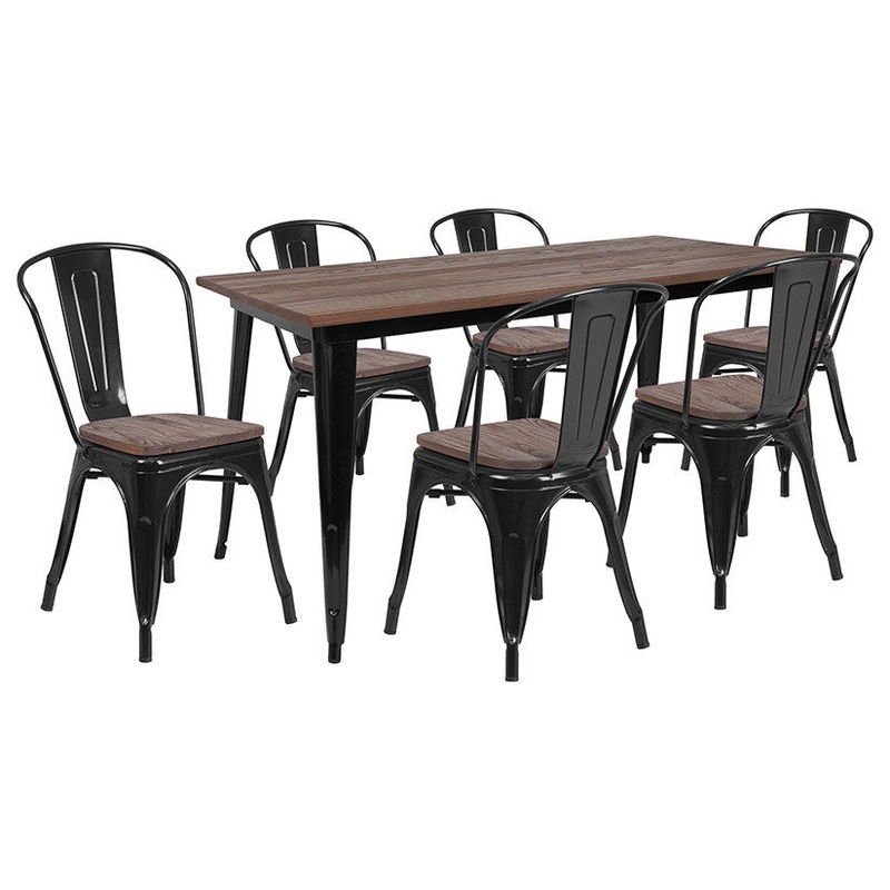 30.25″ x 60″ Metal Table Set with Wood Top and 6 Stack Chairs – Contemporary – Dining Tables – by Bentley Marketing