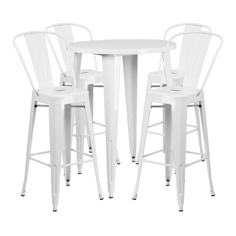 30″ Round White Metal Indoor-Outdoor Bar 5-Piece Table Set With 4 Cafe Stools – Contemporary – Dining Tables – by Bison Commerce
