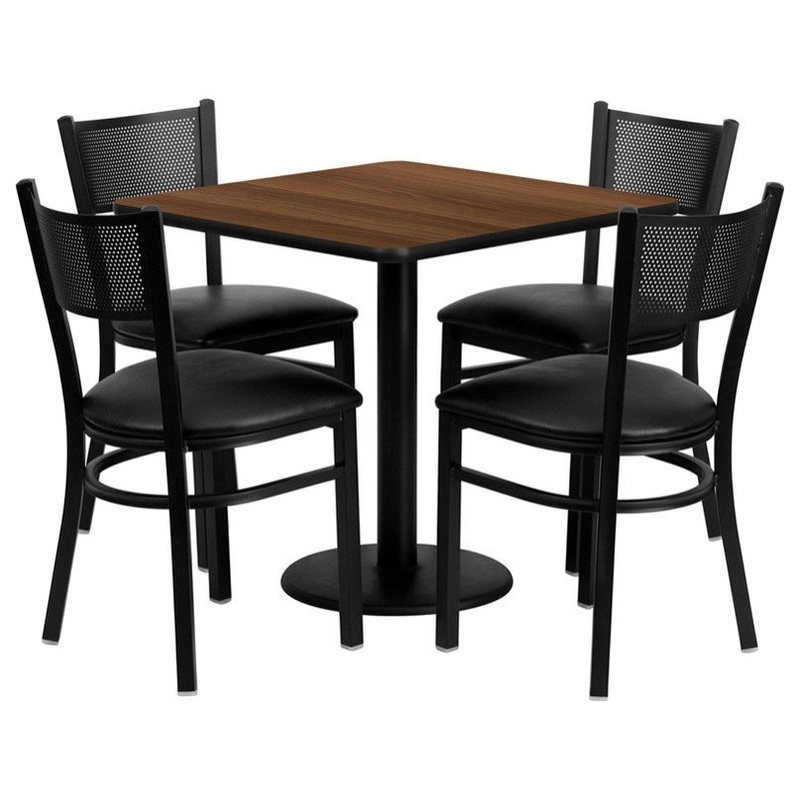 30” Square Walnut Laminate Table Set, 4 Grid Back Metal Chairs-Black Vinyl Seat – Transitional – Dining Sets – by Beyond Design & More
