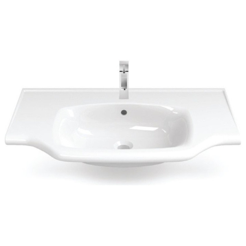 -Curved rectangular white ceramic sink