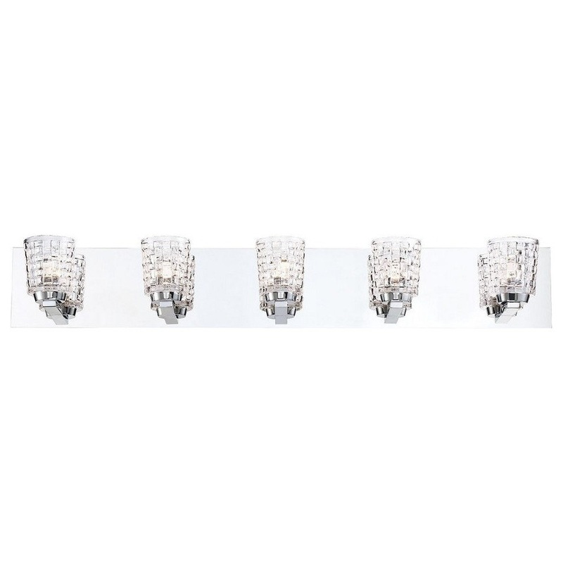 34 Inch 36W 6 LED Bath Bar . Pump Copse 5-Light LED Bathbar Chrome Finish with Woven wicker glass styled vanity. Product Type: BathbarFixture Style: TransitionalCable/Wire Length: 120 inchesMounting Capability: UpMounting Type: J-BOXLocation Type: DAMP Loc