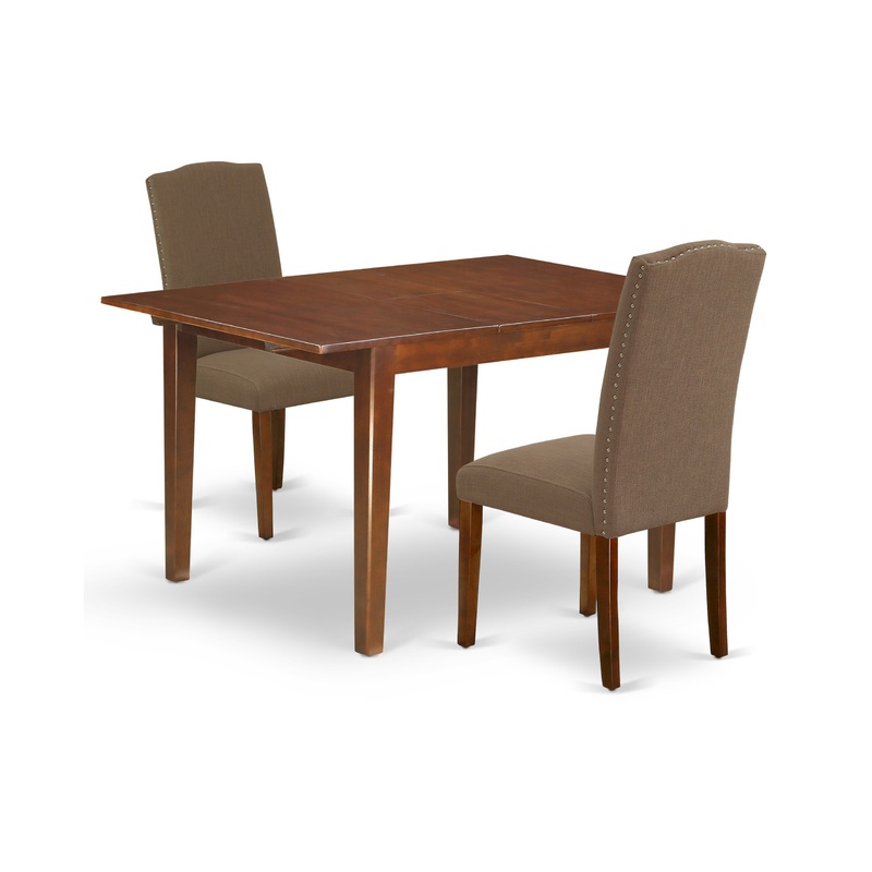 A traditional design gets a contemporary update in this stylish NOEN3-MAH-18 dining set. The fantastic kitchen dinette table is all about sheer elegance. Manufactured from good quality wood and designed in classy Mahogany color, this is one dining table that will just set your dining room apart. The center rectangular table is best for 2-4 people to sit and enjoy their meal. Its made from high quality rubber wood generally known as Asian Hardwood. No heat treated pressured wood like MDF, particle board or veneer top fabricated. This simple but charming Parson chair will add ambiance and style to your dining-room. A contemporary twist on a classic design, this eye-catching design will liven up any look. The traditional parson gives this chair a touch of familiar charm, while the Linen Fabric-Dark Coffee color and clean-lined design elevate this chair with modern flair. The frame of the dinette chairs are engineered to offer a great amount of comfort to your spine and thus reduce the chances of back pain. Straight legs gives this design a hint of well-worn style, while its arched silhouette and nail head trim round out the look with classic character. Just by switching out your old dining set with this one, you can effortlessly refresh your dining space. This budget friendly dining set can be good choice for a great dining time experience with family and friends.