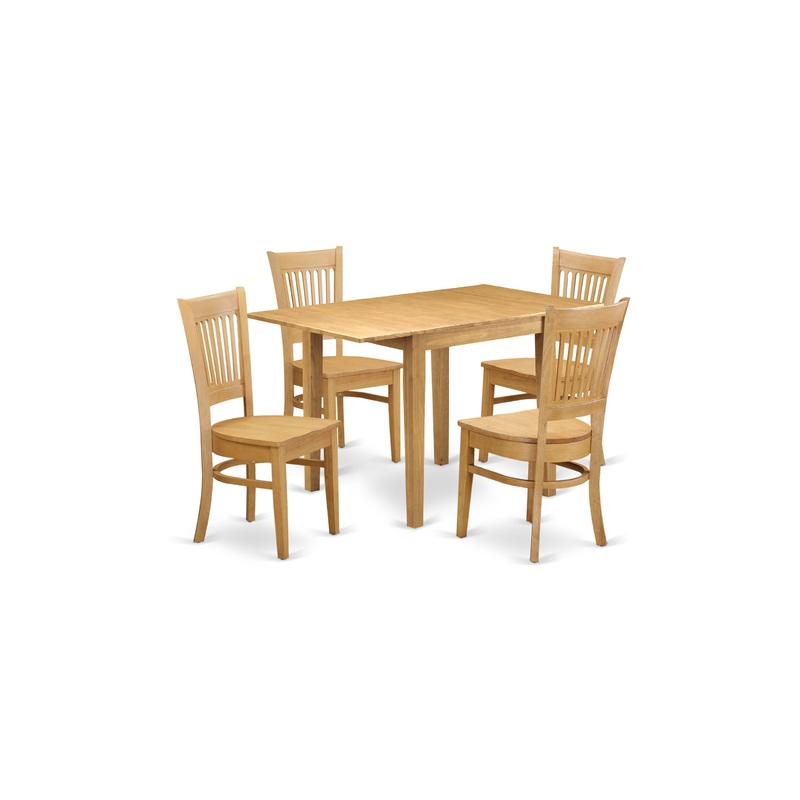 -The kitchen set is perfect for the most trendy designs. It can be used in the kitchen, dining area, dinette, or small apartment, this dinette set seats up to 4 people, so your friends and family can gather together. This 5- piece wood dining table set, contains one solid wood dining table and four modern hardwood wooden dining chairs with slat-back. This dinette set is available in the top-class quality oak finish. This 5-piece kitchen set built from hardwood, this modern dining table set is well suited for industrial and modern settings.
