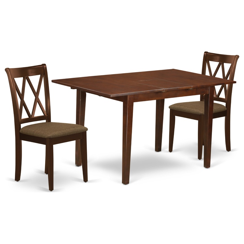To decorate a small dining area, bring this glamorous NOCL3-MAH-C dining set includes a small rectangular dining table and two dining chairs. This dinette set is specifically created in a fashionable style with clean aspects that will just set your dining