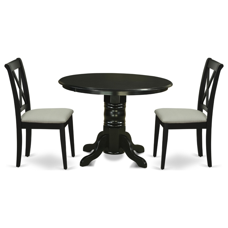 Turn your house into a home with this exclusive and sophisticated SHCL3-BLK-C kitchen dining set. The classic round dinette table offers a stunning black color to enhance any kind of living area or home's kitchen area for any occasions. A thick curled orna