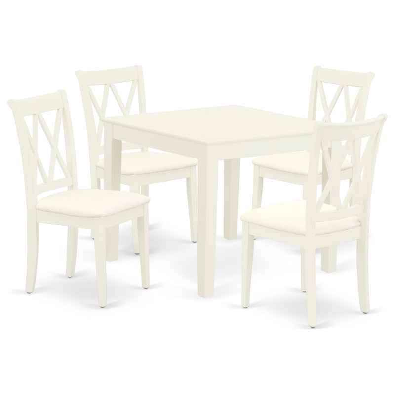 A traditional design gets a contemporary update in this stylish OXCL5-LWH-C dinette set. This specific 5Pc dinette set includes a kitchen table and four kitchen chairs. The fresh and clean lines dominate the cutting-edge design of the square small dining t