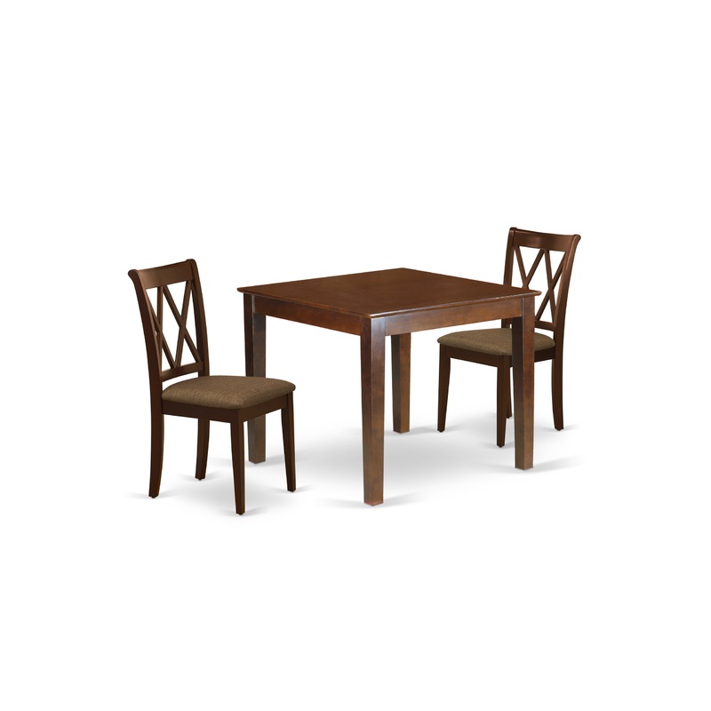 A traditional design gets a contemporary update in this stylish OXCL3-MAH-C dining set. This specific 3Pc dinette set includes a kitchen table and two dining chairs. The fresh and clean lines dominate the cutting-edge design of the square small dining tabl
