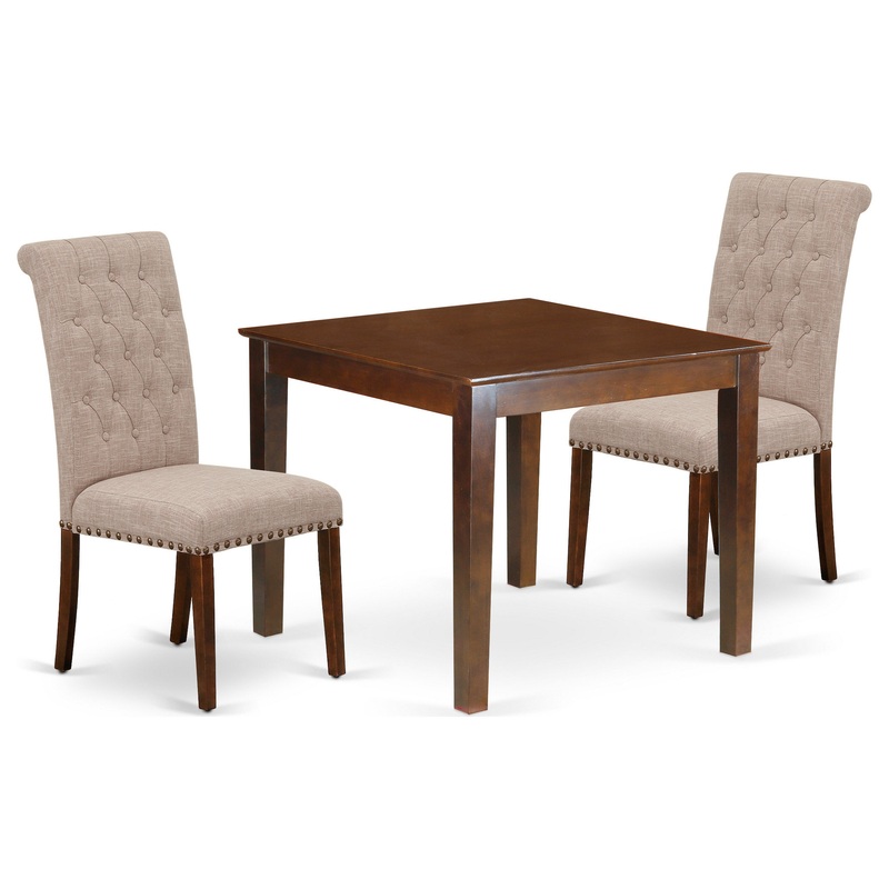 A traditional design gets a contemporary update in this stylish OXBR3-MAH-04 dining set. This specific 3Pc dinette set includes a kitchen table and two parson chairs. The fresh and clean lines dominate the cutting-edge design of the square small dining tab