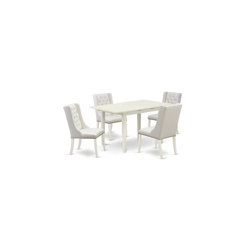 Our attractive 5-Piece dining room set can help any dining room look more beautiful. Our kitchen table set includes 4 beautiful dining chairs and a modern butterfly leaf dining room table. This kitchen dining set will increase the elegance of any dining room with its ageless style. Our parsons dining room chairs are top quality Linen Fabric, which complete comfort and a great sitting experience.