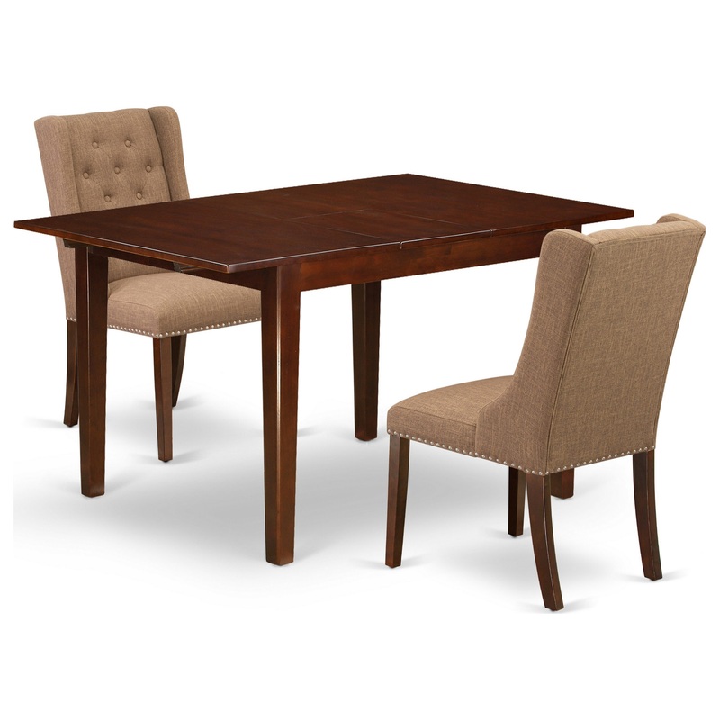 Our attractive 3-Piece dining room set can help any dining room look more beautiful. Our modern dining set includes 2 attractive dining padded chairs and a wonderful butterfly leaf kitchen table. This kitchen dining room set will increase the elegance of any dining room with its ageless style. Our parsons dining room chairs are top quality linen fabric, which complete comfort and a great sitting experience.