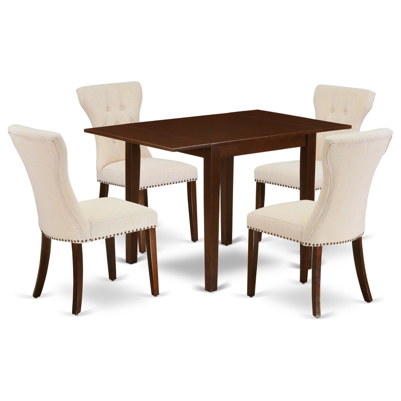 This rectangular dining table set includes 4 fantastic Padded Parson Chair and an excellent 4 legs small dining table. The modern kitchen dining table set provides a Mahogany hardwood wood table and frame and an awesome Light Beige parson chairs seat and h