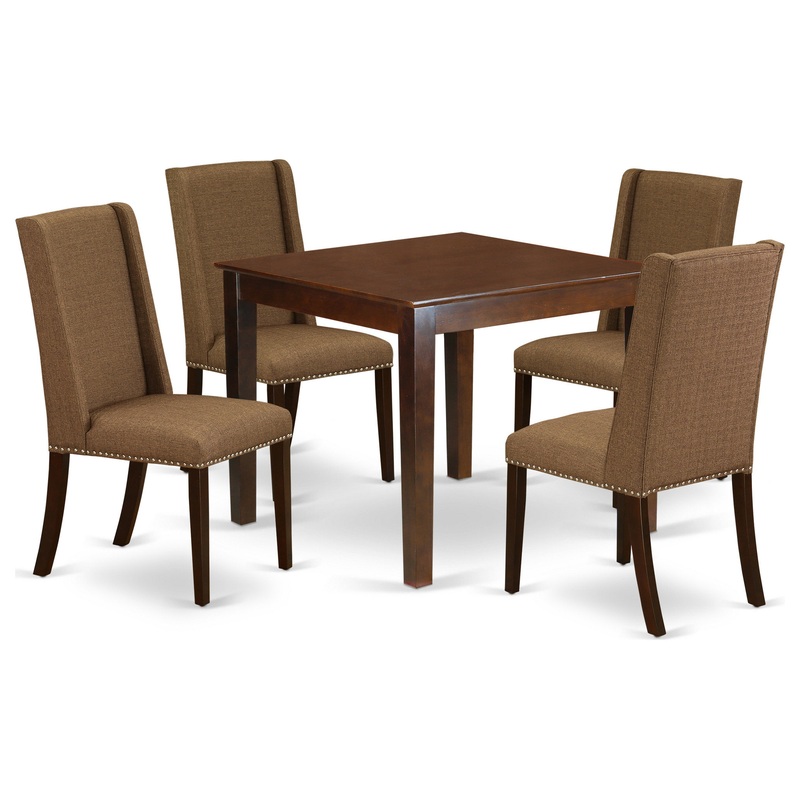 Our dining set includes 4 fantastic upholstered dining chairs and an incredible 4 legs small dining table. The modern kitchen set gives a Mahogany solid wood small dining table and frame and an awesome Brown Beige parsons dining chairs seat and high back t