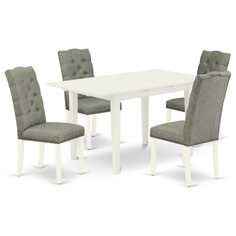 This dining room set includes 4 beautiful dining room chairs and a beautiful 4 legs dining table. The kitchen dinette set provides a Linen White solid wood rectangular table and fantastic parsons chairs that will increase the luxury to your dining area. Th