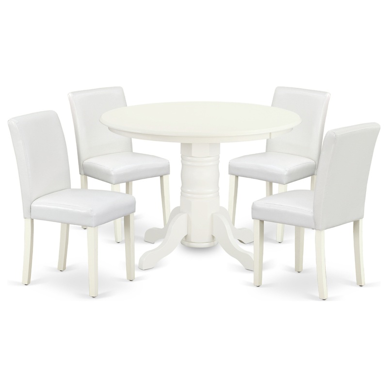 Turn your house into a home with this excellent and sophisticated SHAB5-LWH-64 kitchen dining set. Classic round kitchen dinette table offers a stunning Linen White color to enhance any kind of living area or home’s kitchen area for any occasions. A thick curled ornate pedestal base provides strength and state-of-the-art impression to the round dining room table. This gorgeous Linen White kitchen dinette table will bring the room together as it draws in with is glossy design. No heat treated pressured wood like MDF, particle board or veneer top fabricated. This amazing slick kitchen table makes a really good addition for all kitchen space and corresponds all sorts of dining-room concepts. This simple but charming Parson chair will add ambiance and style to your dining-room. A contemporary twist on a classic design, this eye-catching design will liven up any look. The traditional parson gives this chair a touch of familiar charm, while the PU Leather-White color and clean-lined design elevate this chair with modern flair. Replacing the old dining set with this one, you can effortlessly refresh your dining space. The frame of the dinette chairs are engineered to offer a great amount of comfort to your spine and thus reduce the chances of back pain. The standard shape, size and design makes the dining area significantly attractive. This durable and comfortable dining set can be good choice for a great dining experience with family and friends.