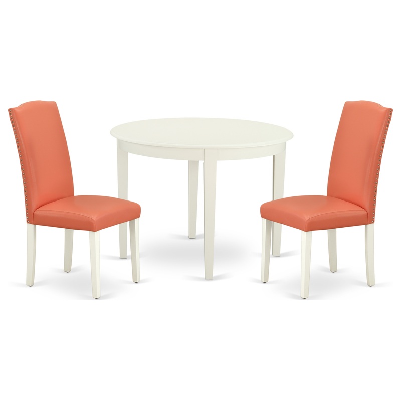 3Pc Round 42″ Table, Two Parson Chair, White Leg, Pu Leather Color Pink Flamingo – Contemporary – Dining Sets – by Morning Design Group, Inc-BOEN3-LWH-78