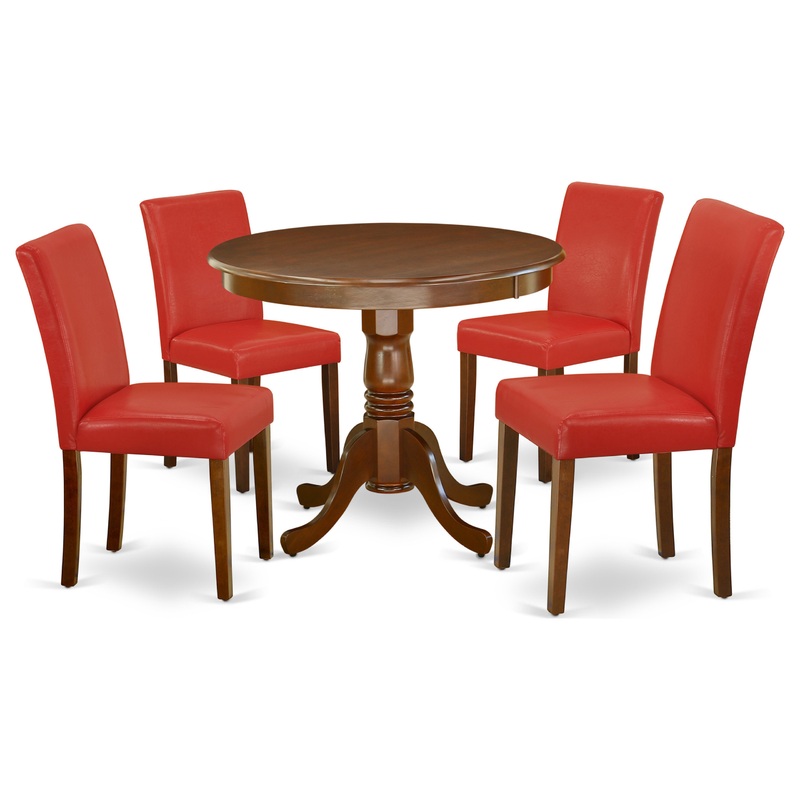 The ANAB5-MAH-72 kitchen dinette set facilitates an affectionate family feeling. A comfy and classy Mahogany color offers any dining area a relaxing and friendly feel with the dinette table. This small dining table require a very less space and itd be a great choice if you are struggling with the issue of space in your house. With a soft rounded bevel at the edge of the table top, this well-designed and comfortable small kitchen dinette table may be used for hours at a time. This amazing Mahogany kitchen table makes a really good addition for all kitchen space and corresponds all sorts of dining-room concepts. No heat treated pressured wood like MDF, particle board or veneer top fabricated. This simple but charming Parson chair will add ambiance and style to your dining-room. Give your home a pop of chic style with this must-have Parson chair. A contemporary twist on a classic design, this eye-catching design will liven up any look. The traditional parson gives this chair a touch of familiar charm, while the PU Leather-Firebrick Red color and clean-lined design elevate this chair with modern flair. Replacing the old dining set with this one, you can effortlessly refresh your dining space. Try surrounding a sleek wood table in your dining room with these sleek chairs to craft a new aesthetic. The chairs are engineered to offer a great amount of comfort to your spine and thus reduce the chances of back pain. This budget friendly, durable and comfortable dining set can be good choice if you are looking for a great dining time experience with family and friends.