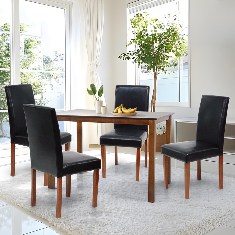 -DINING ROOM SET: This stylish set includes a sturdy wooden table and four matching chairs, ideal for any space. The classic finish adds a cozy touch to your kitchen or dining area.