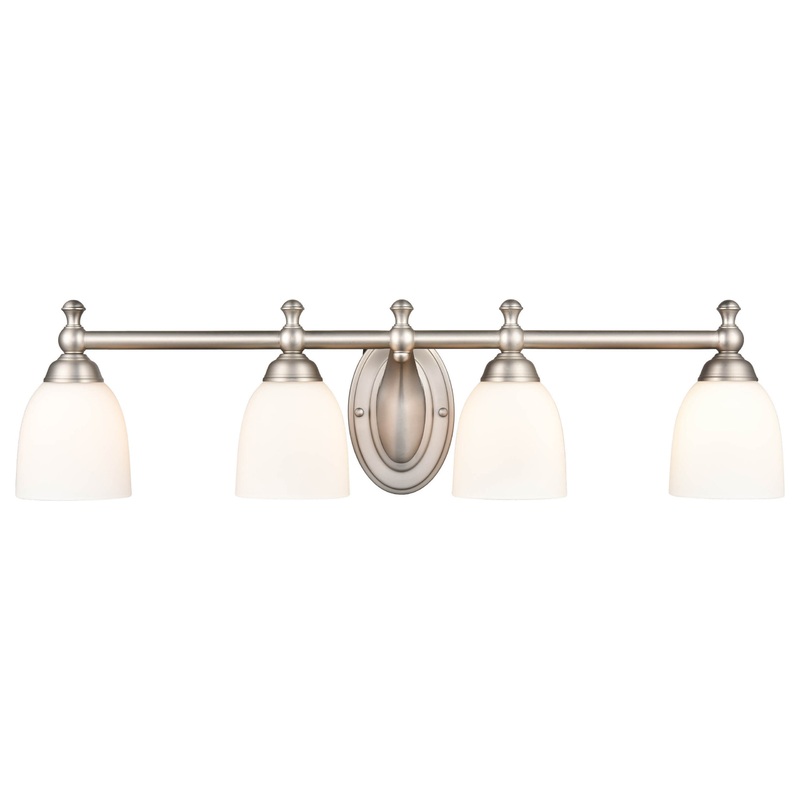 4 Light A Lamps 100W 30 in. Satin Nickel Vanity Light, No bulbs included, UL Listed and Hardwired
