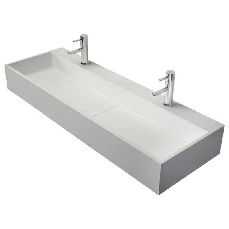 -Premium Material: Stone resin construction in matte white maintains its sleek and clean appearance even after years of wear and tear. -Double-Sink Design: Double-sink design provides adequate space and accommodates 2 persons for washing, a delight for bot