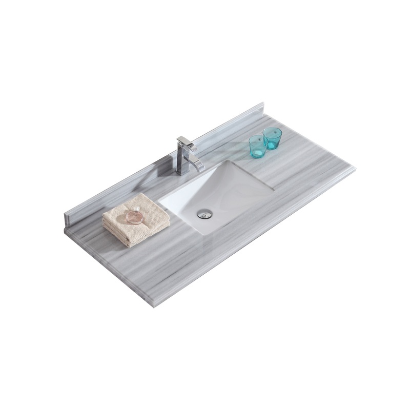 Dressed in classic authentic Marble of Quartz, LAVIVA countertops offer the crowning gem to each vanity. Each precious rendition sparkles with uniqueness creating your ultimate look for your bathroom. The countertops are produced using a 2cm thick slab which is honed and polished to perfection by hand. Topped off with matching backsplash and large cUPC ceramic sink. To enhance longevity the material is sealed twice. The distinctive veins, markings, and color create a feeling of exclusivity and characteristic to your bathroom.