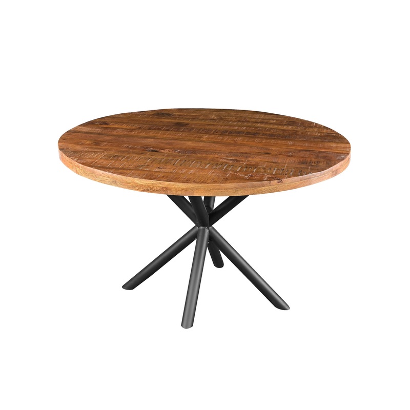 With a perfect fusion of farmhouse style and simple, industrial elegance, our exquisitely hand crafted circular dining table is the epitome of fine craftsmanship and peerless, modern charm. Featuring a wide, round, solid mango wood tabletop that depicts di