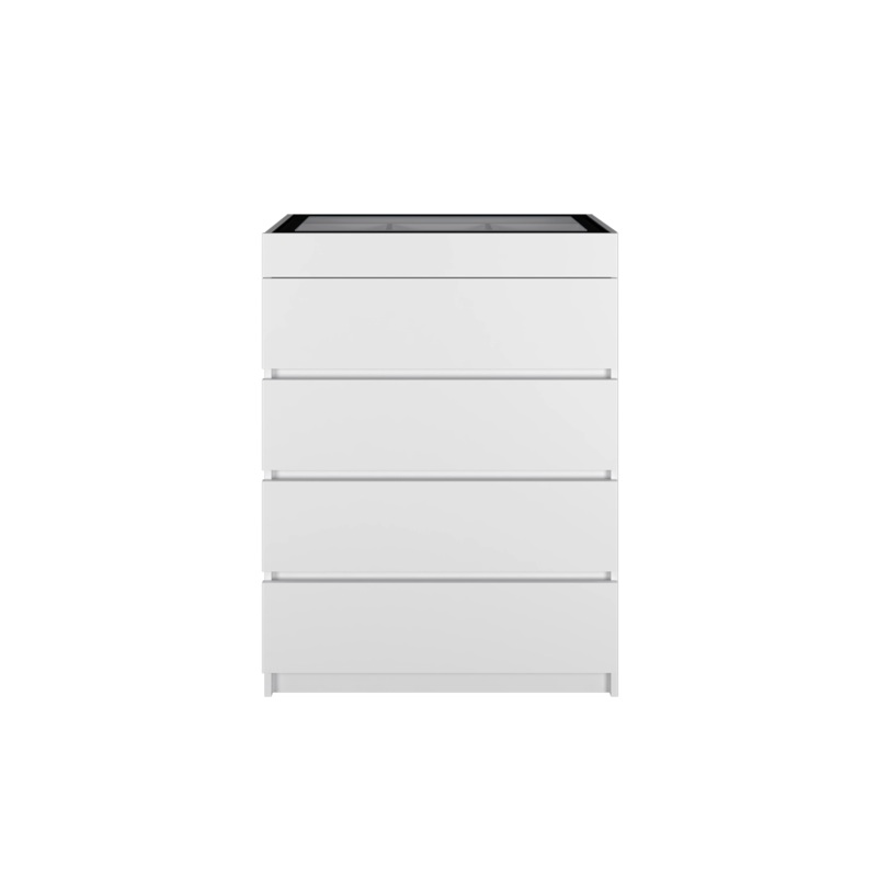 Design : Glass Top ; Smooth running drawers with pull-out stop ; Top drawer is multi-storage partitionMaterial: Particle BoardProduct Dimension: L 79 x W 40 x H 103.5 cmDrawer Inner Dimension: L 710 x W 327 x D 100 mm (per layer)Delivery Term & Conditions