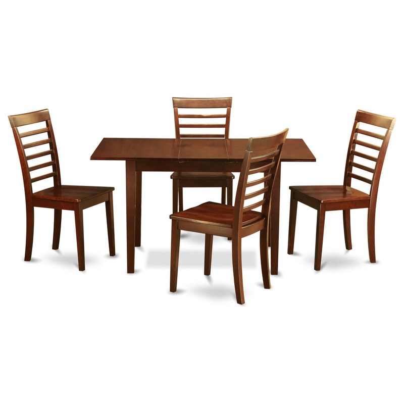 Wooden dining table set, with a smooth and rich finish that harmonizes with any interior decoration or theme of your room. This is a table and chairs with foldable leaf allowing it to be a favorable table and chairs set. The bevel is thin and sharp, building the table and chair look smooth and engaging. The tabletop is in a rectangular shape. The legs from the dining table set are hardwood. The chairs front legs are straight whereas the back legs are marginally curved to meet the wood back of the chair. The back is a ladder back and is a bit curved for appeal.