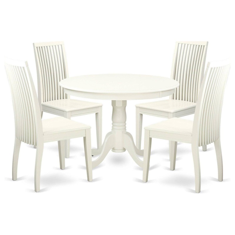 -Table dimensions: 42 diam. x 29.5H in. -Chair dimensions: 18W x 18.4D x 39H in. -Durable solid hardwood construction -Transitional style -Seats 4 peopleProduct ID197888816Manufactured ByDecor LoveSold ByDecor LoveSize/WeightW 42" / D 42" / H 29.5" / 105 l
