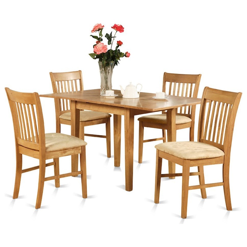 Have diner in luxury and very coziness with Norfolk smalll table sets. This small kitchen table set offers top quality design and style with a touch of elegance to add in dynamic attractiveness to any dinette.A practical 12 inch self-storage extension leaf provides more space.Norfolk table and chairs sets are made out of the best possible Asian wood.Wood or upholstered seats offer you spectacular design and comfort to this smalll table set.Table and chairs are finished in a regular Oak color.