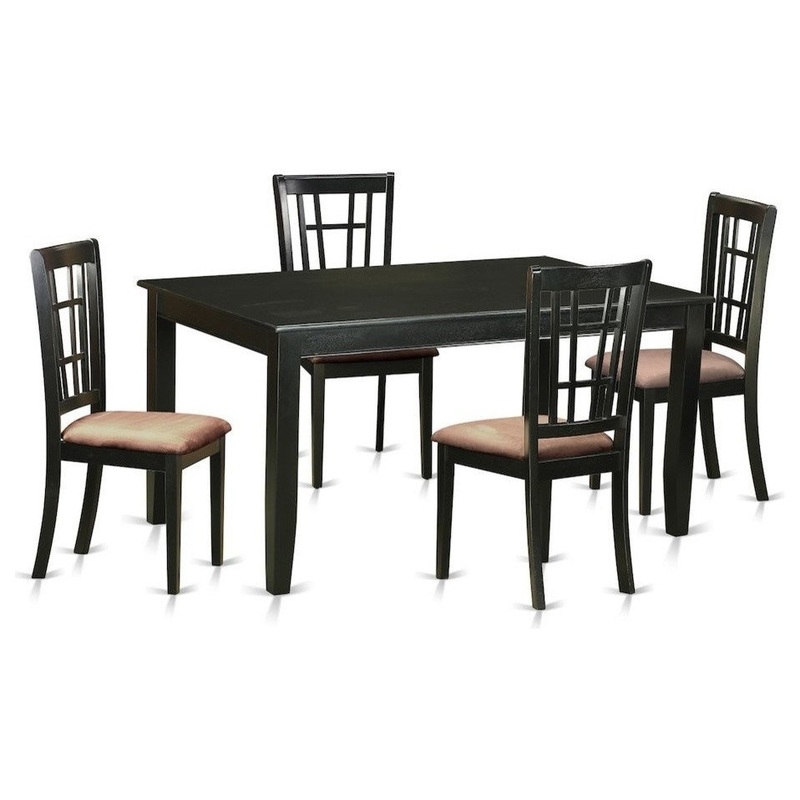 -Fabric: MicrofiberPackage Includes: This 5 Piece Dudley rectangular dining dinette table set includes one table size 36in x 60in and 4 microfiber upholstered seat chairs.