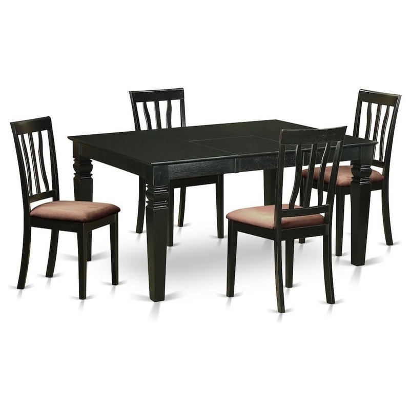 -Package Includes: 5 piece Weston Rectangular Dining Table with 18in butterfly Leaf and four Antique Dining Chair With Microfiber Seats.