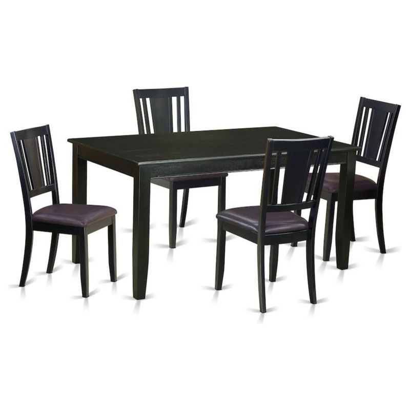 -This 5 piece Dudley rectangular dining set includes one table size 36in x 60in and 4 faux leather seat matching dining chairs finished in black.