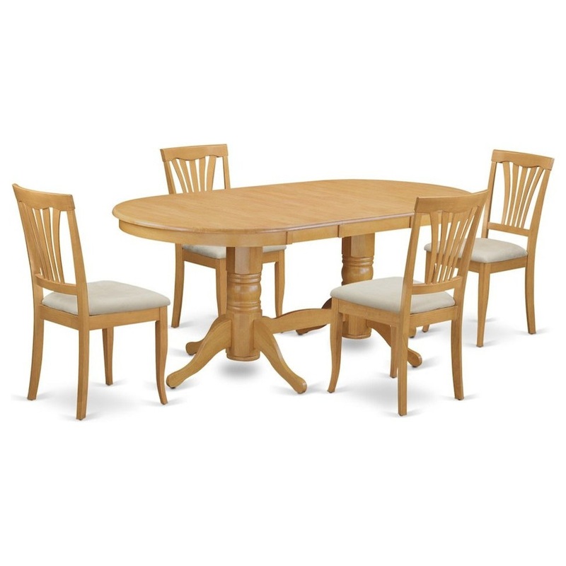 5-Piece Dining Room Set for Oval Table, Leaf and 4 Chairs With Cushion – Contemporary – Dining Sets – by Bison Commerce