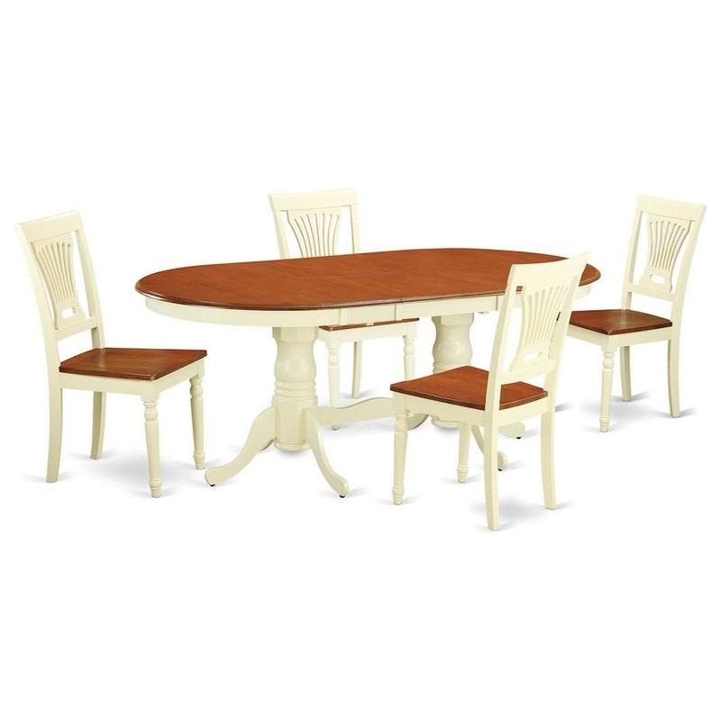 The Plainville table set features a breathtaking finish which has a countryside laid-back impression. Joining together the simple care of a simple hardwood dining room table top with timeless styled legs for that personalized look. The streamlined oval dining table top, that expands to 78\