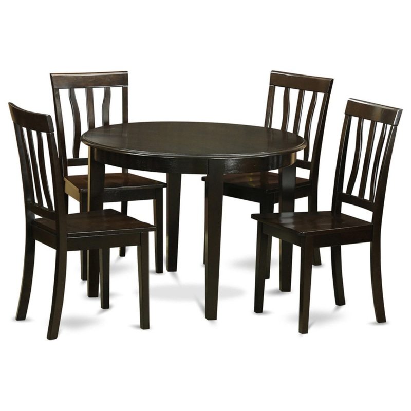 5 Piece Dining Seat, 4 Chairs With Slatted Backrest & Round Table, Espresso – Transitional – Dining Sets – by Decor Love