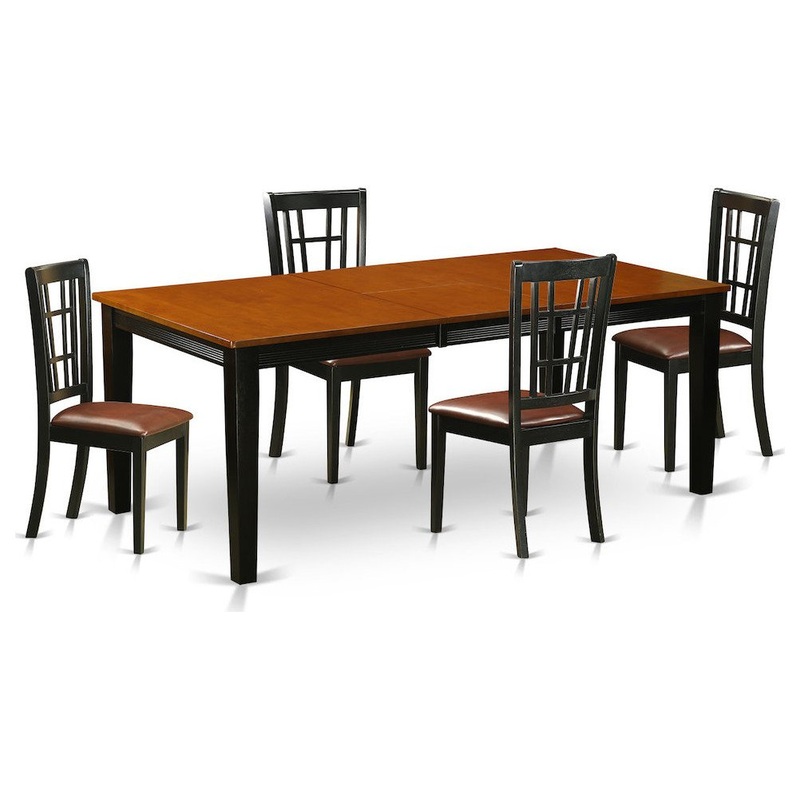 -This 5 piece dinette set Includes dining table and 4 faux leather seat dining room chairs finished in Black and Cherry.