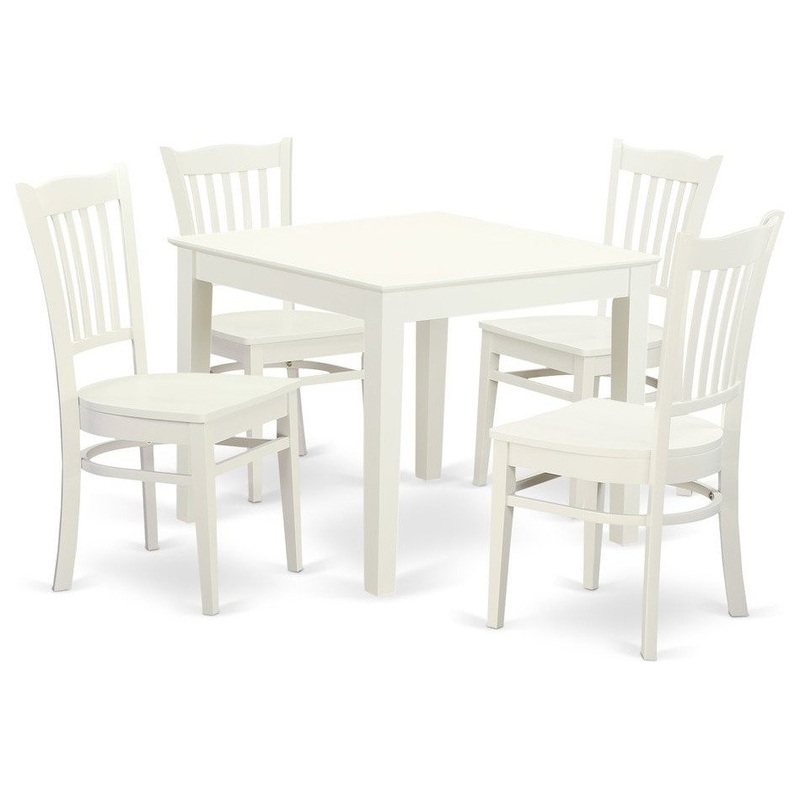 This particular set comes with a dimensions square small table and stylish dining chairs. This particular 5 Piece Kitchen table and chairs set with one dining table and four kitchen area chairs. Everyone is able to set comes with a fit around this unique dining table set which includes size of 36in square x 30in high. This contemporary finished top with solid hardwood is both attractive and gorgeous while also supplying a sense of durability. The kitchen space chairs provides an extraordinary and stylish characteristic to any kitchen area due to the floral inspired slatted back kitchen chairs design. Finished to generate the glow of the pleasant colored Linen White and the gentle contours that cast subtle while highly efficient shadows, this specific kitchen table set will definitely present distinct dining experience that feels classy and cozy.