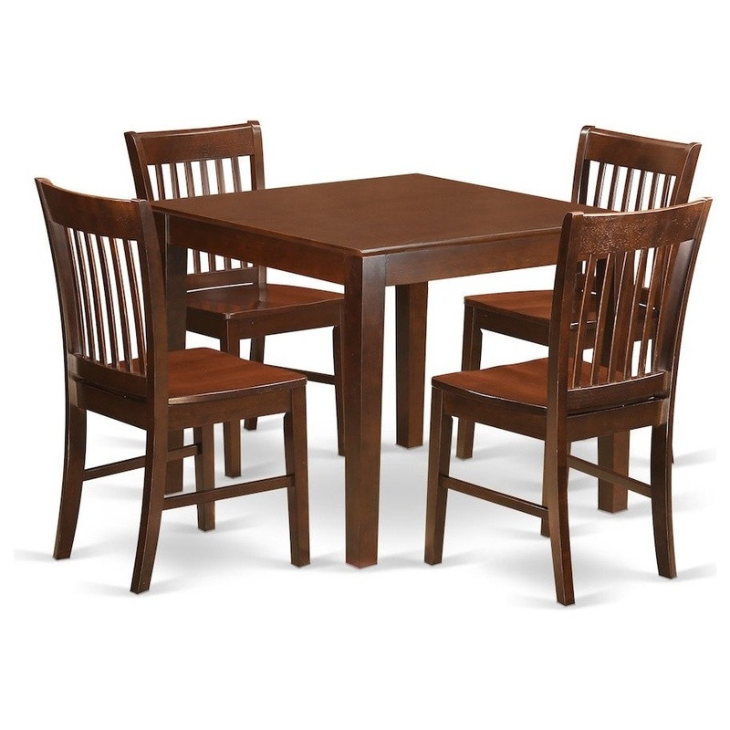 This unique set comes with a proportioned square small dining table and sophisticated kitchen chairs. This amazing 5 PC Dining table and chairs set with 1 kitchen table and four kitchen chairs. Anyone can set comes with a fit around this unique dining table set that features size of 36in square x 30in high. This slick finished top with hardwood is both attractive and gorgeous in addition to supplying a sense of durability. The kitchen space chairs provides an extraordinary and elegant feature to any kitchen area due to the floral inspired slatted back kitchen chairs design. Finished to bring in the glow of the pleasant colored Mahogany and the gentle contours that cast subtle yet highly efficient shadows, this valuable dining room table set will definitely present distinct dining experience which feels elegant and relaxing.