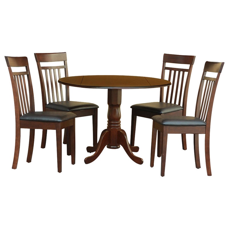 -Package Includes: 5 piece kitchen Round Table with 2 Drop Leaves and 4 Slatted back Chairs with Faux Leather Upholstered Seat