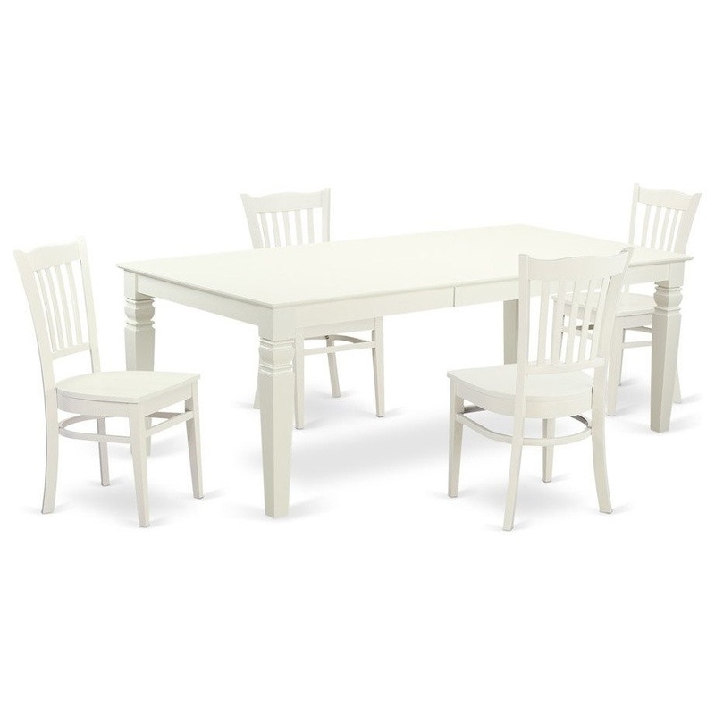 This beautiful dining room set is reminiscent of a classic Missionary style and adds an elegant, contemporary touch to any kitchen area or dining room. This particular Five Piece Dining room table set with 1 table and four dining area chairs. Premium quality kitchen set which is made out of 100% Asian Hardwood. Simply no MDF, veneer, laminate include with our items. This table integrated an 18 inch self storage extension Leaf which can be stored right beneath the table top. The rectangle-shaped kitchen table is finished in a pleasant, high shine Linen White that is easy to care for and polish. This table features durable square legs with carved decor and plenty of space for individual comfort. The straight back chairs are ideal for both formal and casual social gatherings.Table Dimensions: Length 66/84; Width 42; Height 30, Chair Dimensions: Length 17; Width 17; Height 37
