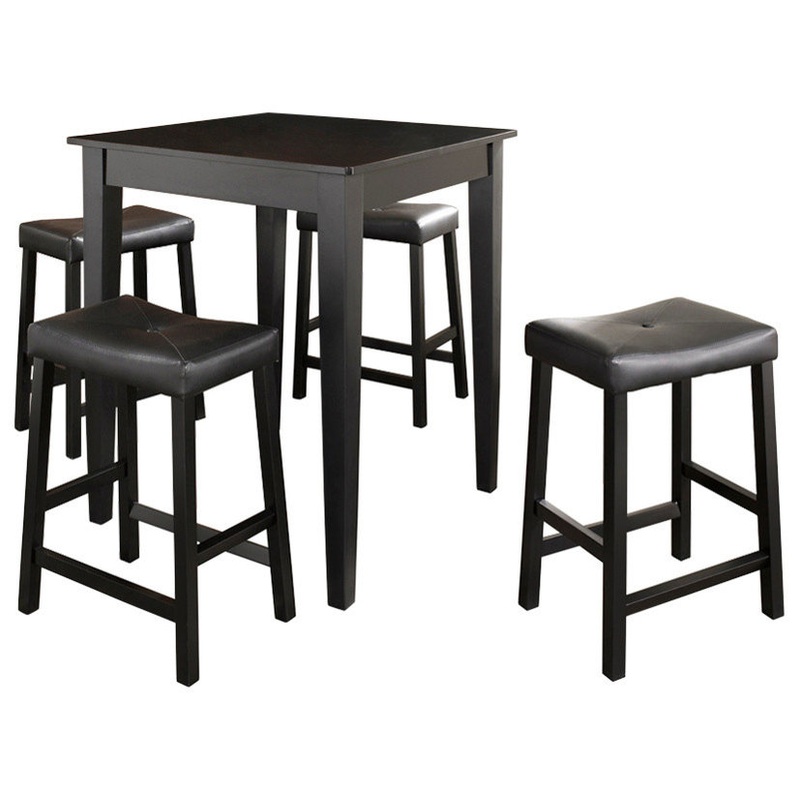 Constucted of solid hardwood and wood veneers, the 5 piece Pub / High Dining set is built to last. Whether you are looking for dining for four, or just a great addition to the basement or bar area, this set is sure to add a touch of style to any area of your home.
