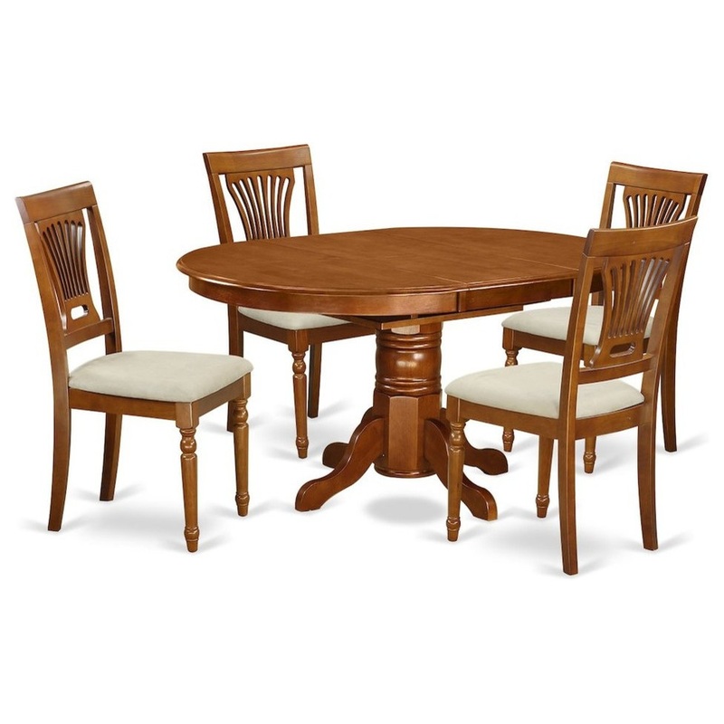 -5 piece One Avon Oval Table With 18in Butterfly leaf and 4 Plainville matching chairs with microfiber upholstered seats.