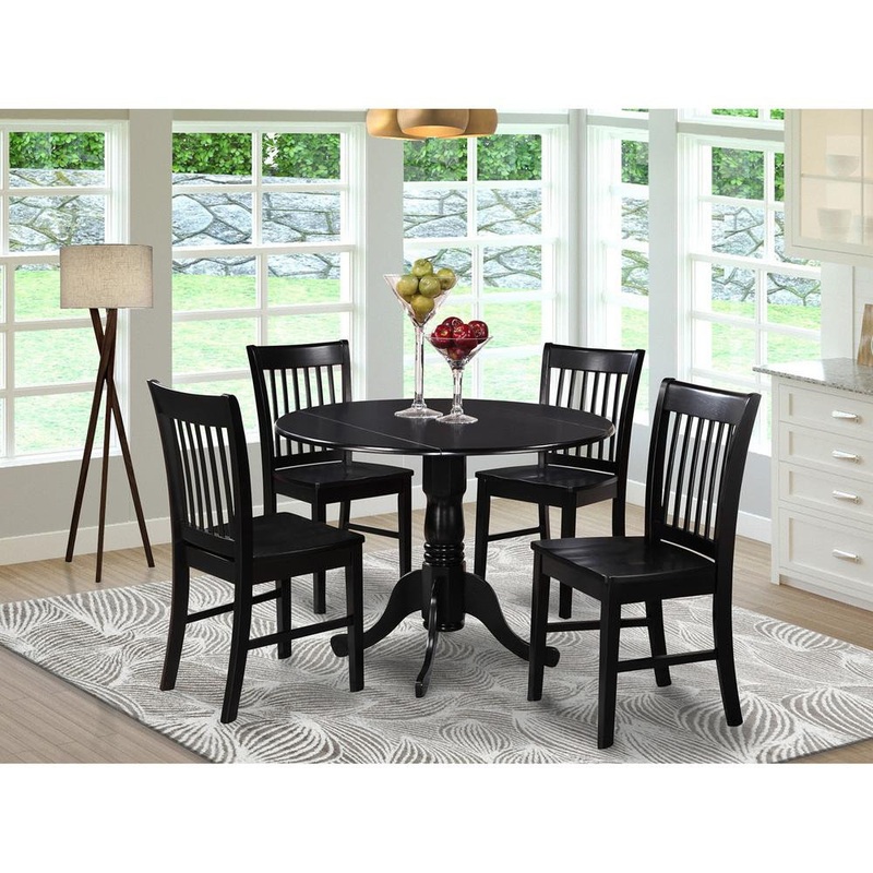 -Package Includes: 5 piece kitchen Round Table with Drop Leaves and 4 wood Seat Chairs in a Black Finish