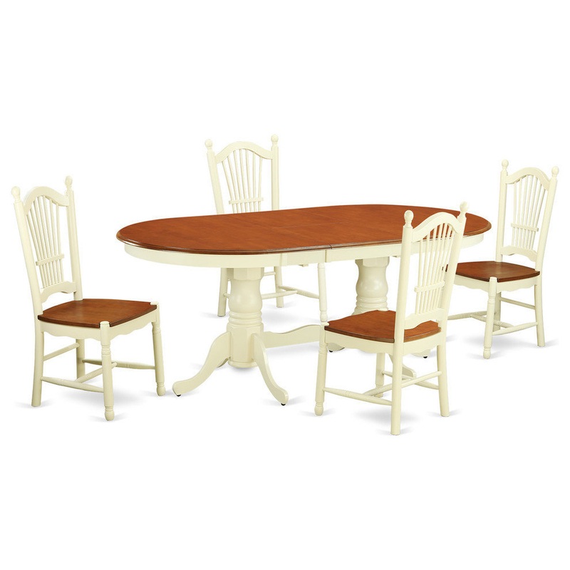 -Package Includes: This 5 piece dining set Includes dining table and 4 wood seat dining room chairs finished in Buttermilk & Cherry