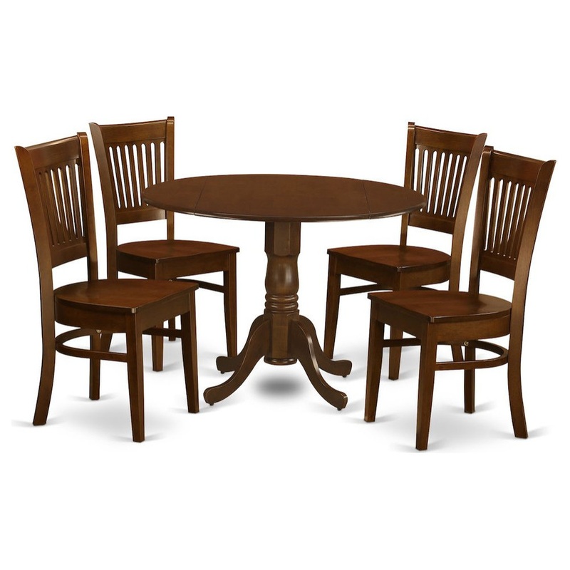 -This is a superior quality table and chairs set which will come in three pieces, two chairs with microfiber upholstery seats and a round table with pedestal stand. The table provides a perfect Espresso finish and is crafted from authentic Asian hardwood only. The best thing about this dining room table is that it comes with 2 drop down leaf. The design for our dining room set has been inspired by the contemporary furniture information that require minimum space, provide comfort and ease of usage.