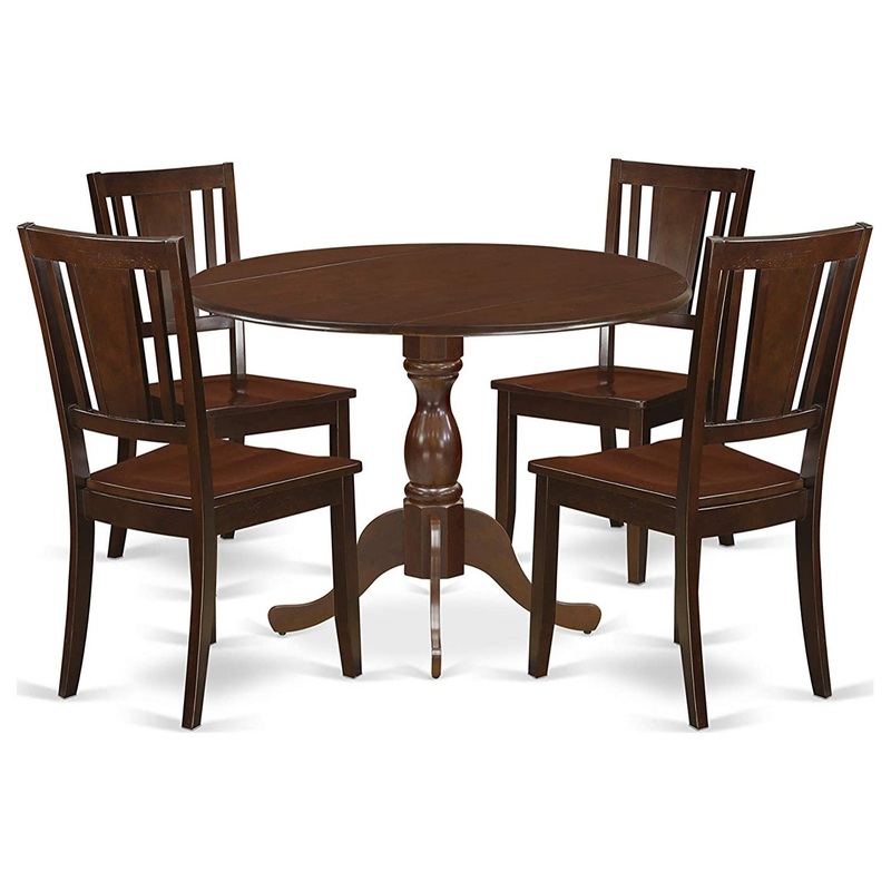 -DINETTE SET FINISH: Our dining table have a Mahogany color Table Top and Pedestal Legs. The mid century dining chairs seat wooden legs finish is Mahogany. Our wood dining chairs and gorgeous modern dining room table will match with any room dcor due to its traditional design.