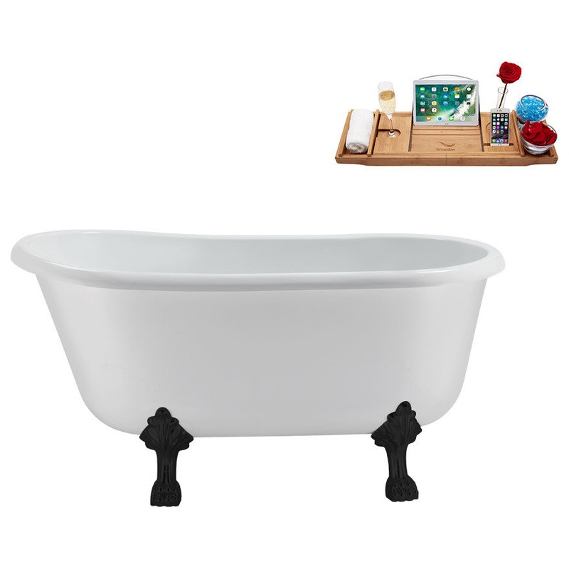 Spoil yourself with this 57" Streamline N375BL-IN-BL Clawfoot Tub and Tray With Internal Drain. Equipped with an internal matte black drain and matte black claw feet and designed to fit 65 gallons of water, this bathtub will bring a personal spa right to y
