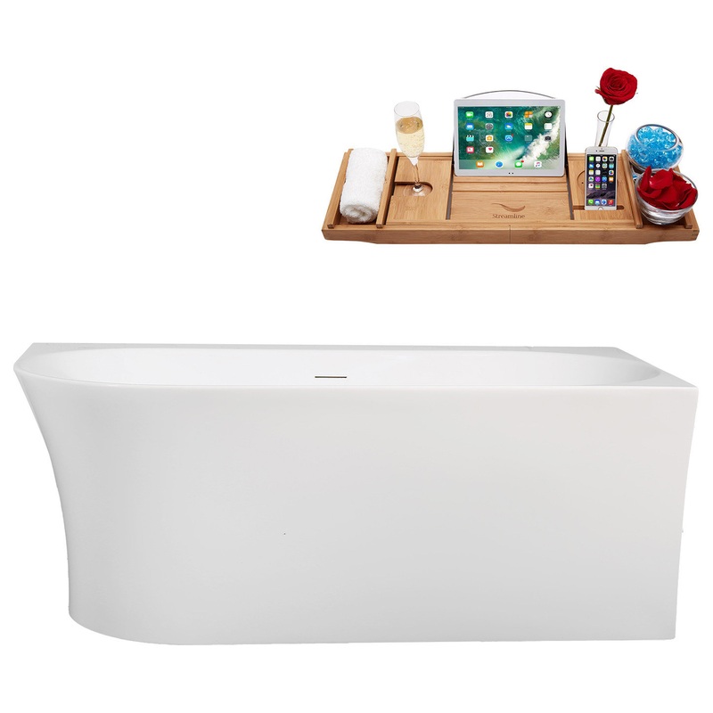 After a tiring day at work there is nothing better than a long, relaxing, soak in a bath. When it comes to freestanding bathtubs, there is nothing better than the 59" Streamline B-360-123-WH Soaking Freestanding Tub and Tray With Internal Drain in Glossy W