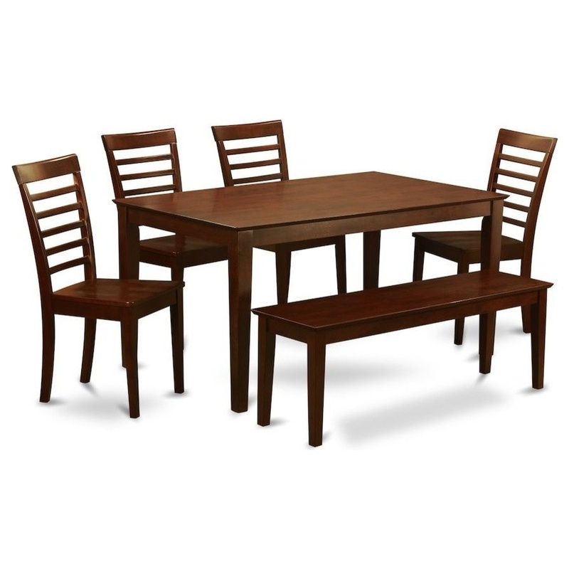 Dining table set can provide your home kitchen advanced complexity with a tasteful as well as smart beautiful design. This excellent Capri dinette table together with dining chair comes with a solid wood top for a sophisticated, modern look. Rectangular kitchen table with four straight legs for your clean and superior contemporary style and design.Dining room chair with really comfy ladder back suit dining room table. Dinette chair seats in either wood , microfiber upholstered, and last of all padded to match desire and ideal theme. Finished in a vibrant and glamorous Mahogany.Table Dimensions: Length 60; Width 36; Height 30, Chair Dimensions: Length 17; Width 16.5; Height 37, Bench Dimension: Length 51; Width 15; Height 17.75