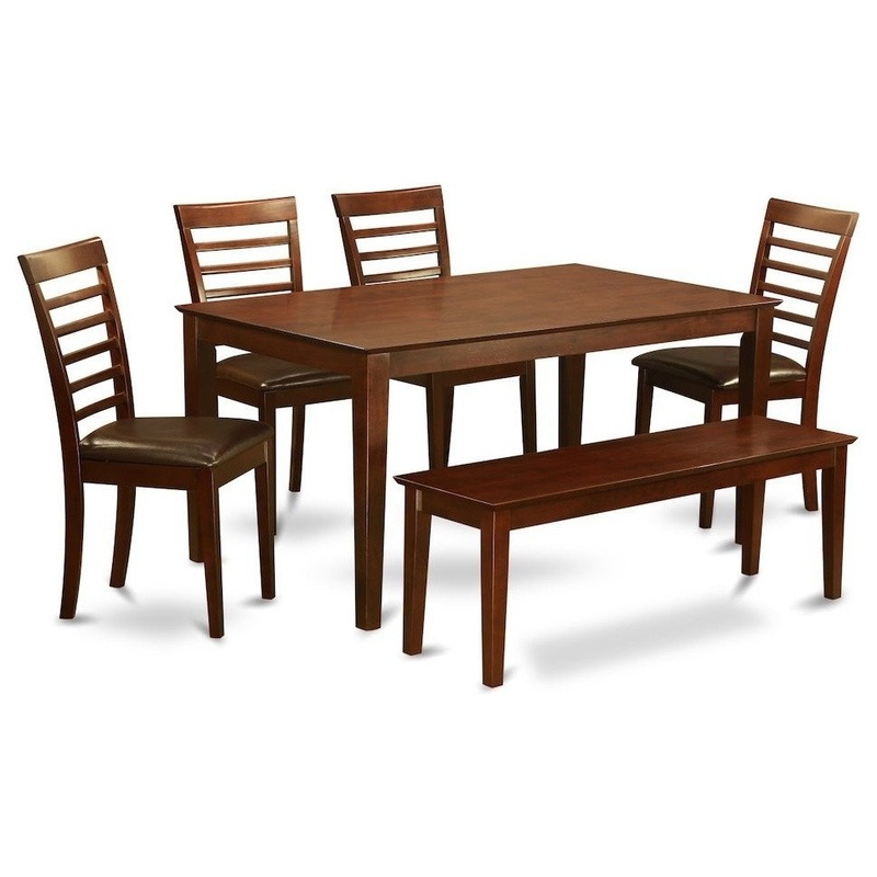 Dining table set allows your kitchen area advanced refinement with an exquisite and smart aesthetic style and design. This specific Capri dining room table combined with dining room chair contains a solid wood top for a refined, modern appearance. Rectangular kitchen table with four straight legs for your clean and advanced modern style and design.Kitchen dining chairs that has very comfy ladder back match up with dining table. Dining room chairs seats in either wood , upholstered, and last of all faux leather to fit desire and desired motif. Finished in a distinctive and luxurious Mahogany.Table Dimensions: Length 60; Width 36; Height 30, Chair Dimensions: Length 17; Width 16.5; Height 37, Bench Dimension: Length 51; Width 15; Height 17.75
